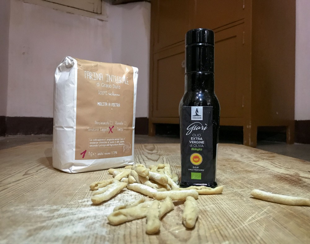 "Gnocculi cavati" è una pasta fresca preparata con farina e acqua tipica del territorio Trapanese. In questa versione è stata utilizzata farina integrale di grano duro Senatore Cappelli, variante molto diffusa nel passato che adesso sta meritatamente ritornando a deliziarci con i suoi profumi.