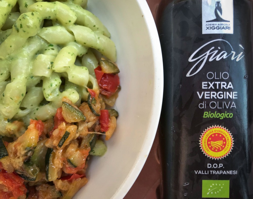 Ultimate il piatto in una pirofila mescolando la pasta con la crema e, se serve, aggiungete dell'acqua di cottura; aggiungete le zucchine in cima e un filo d'olio Giarì a crudo.