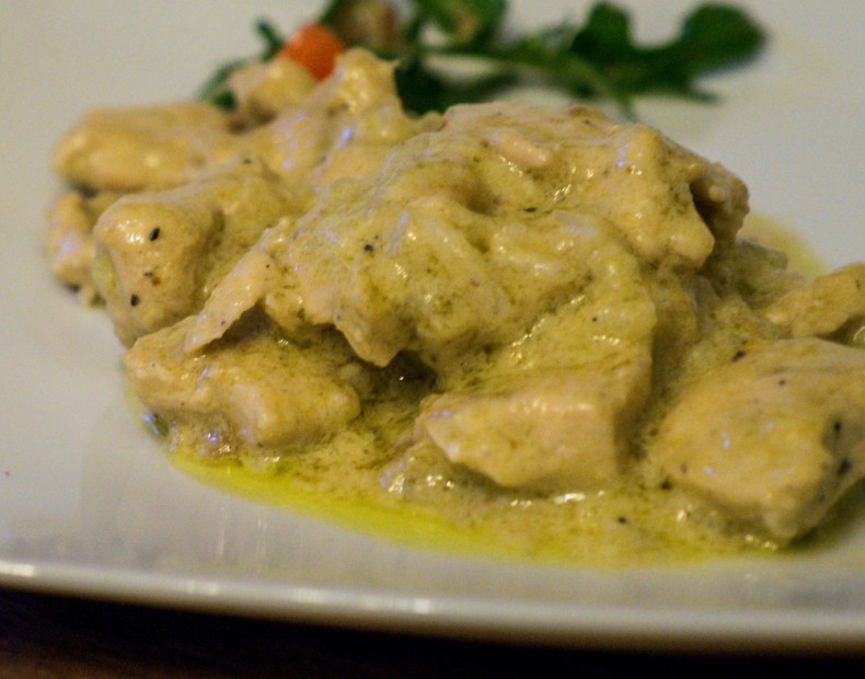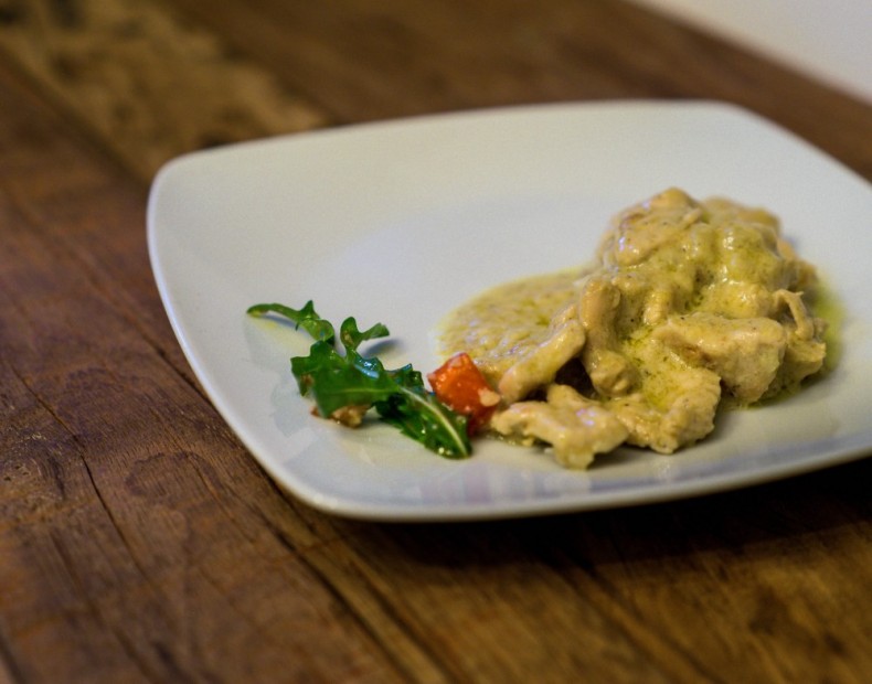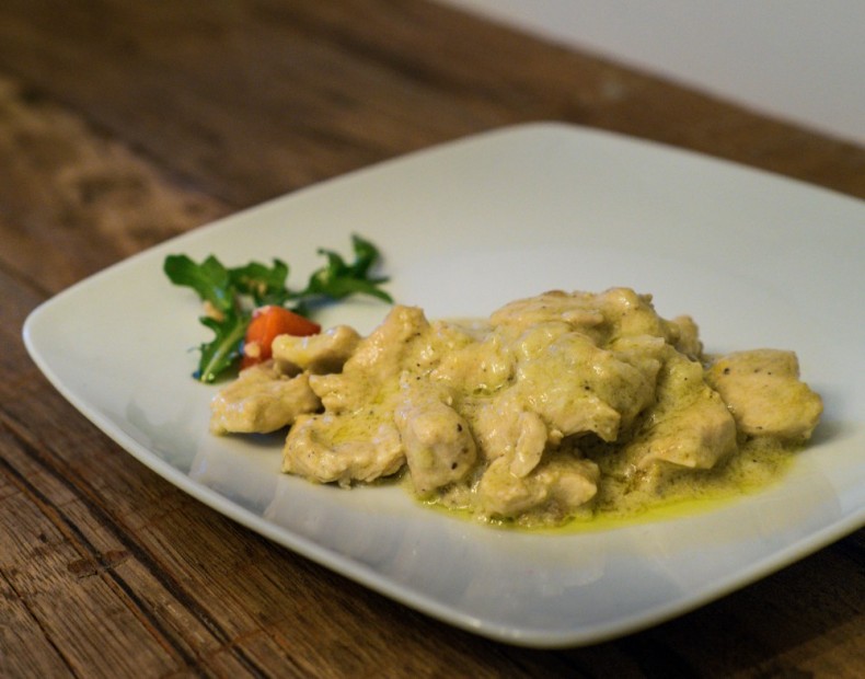 Tagliate il petto di pollo a pezzetti; in una ciotola aggiungete curry abbondante, sale, pepe nero macinato fresco eil succo di un lime quindi mescolate per bene.