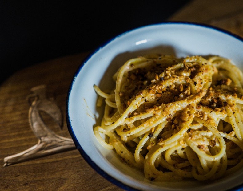 Scolate la pasta al dente e amalgamatela con il condimento all'interno di una pirofila aggiungendo poco brodo di cottura per volta fino ad ottenere una giusta cremosità.