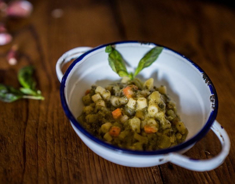 Per dare un tocco di freschezza e profumo al piatto, a fuoco spento aggiungete una foglia di basilico per persona e un quarto di spicchio d'aglio per coppia tutti tagliati finemente.