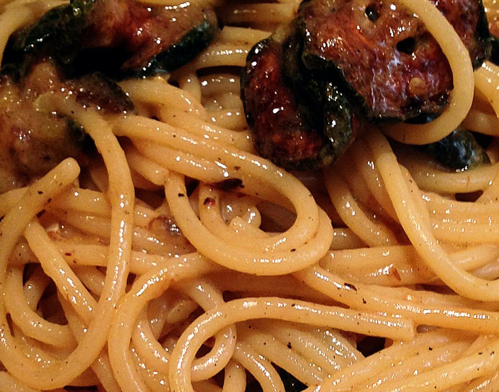 Questa ricetta nasce dall'unione di un piatto classico romano, la "cacio e pepe", e da un piatto tipico del territorio trapanese, la pasta con zucchine fritte.