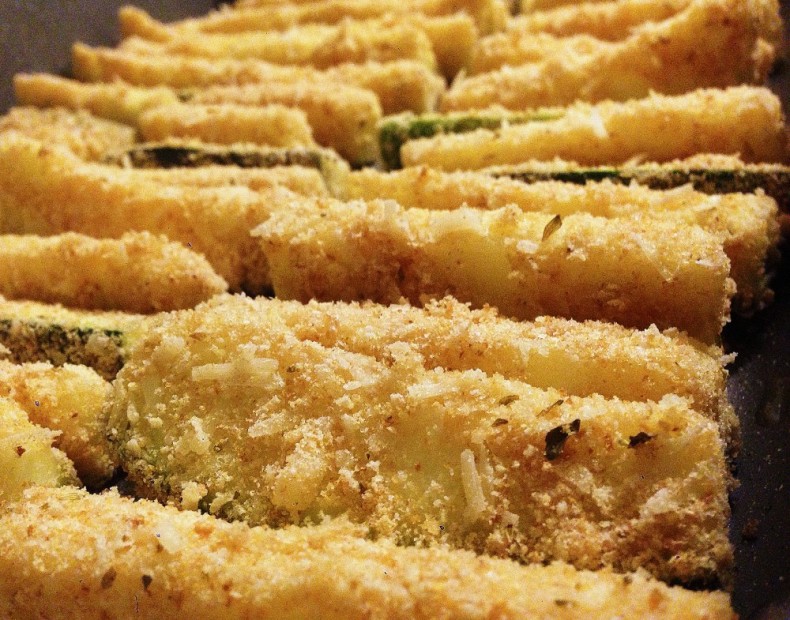 Passate le zucchine nell'olio e panatele ad una ad una e riponetele in una teglia antiaderente con un filo d'olio nel fondo, altrimenti potete utilizzare anche la carta forno.